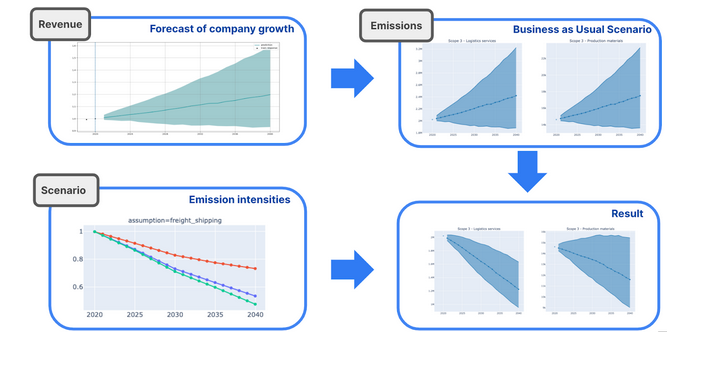 Das Ziel des Cozero Prognosemodells ist, dir eine Vorstellung davon zu geben, wie sich die Kohlenstoffemissionen deines Unternehmens in der Zukunft entwickeln könnten, basierend auf verschiedenen Szenarien, die die Welt möglicherweise einschlagen könnte. Dadurch kannst du realistische Ziele setzen und die Lücke zwischen deinen Zielen und der potenziellen zukünftigen Entwicklung bewerten. Das Modell soll dir eine Vorstellung von der Entwicklung deiner Unternehmensemissionen geben, wenn du keine eigenen Klimamaßnahmen ergreifst, sondern dich nur auf die allgemeine Dekarbonisierung von Dienstleistungen, Gütern usw. verlässt, die du von Dritten erwirbst.
