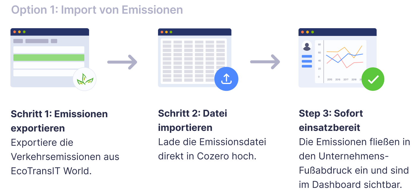 = Exportiere Daten zu Transportemissionen aus ETW und importiere sie direkt in die Cozero-Plattform.