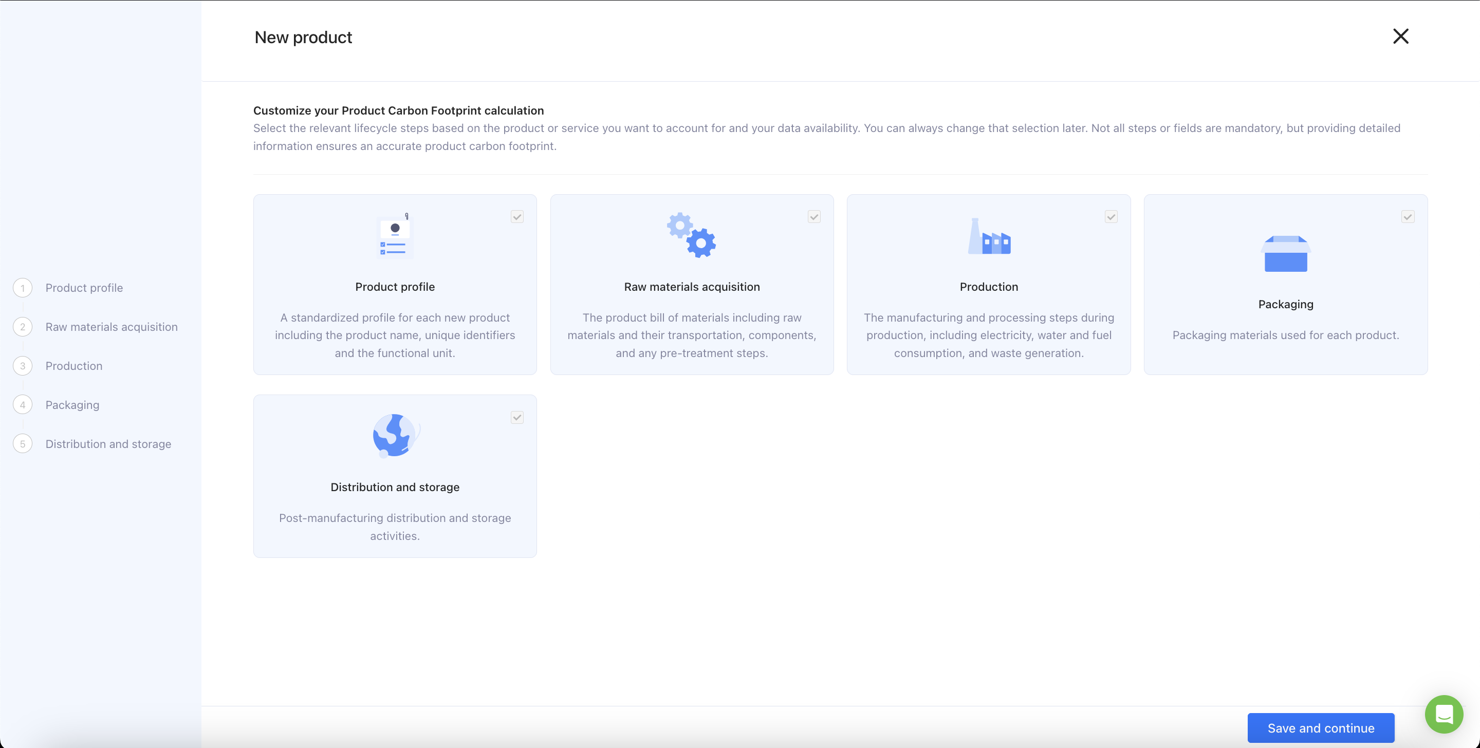 The first step is to select the relevant lifecycle steps you want to include in your assessment. If you’re unsure which to choose, refer to the linked page for more details.