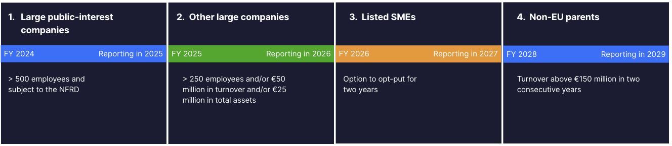 Other large EU companies meeting two of the three conditions will be required to report under the CSRD, even if previously not subject to the NFRD