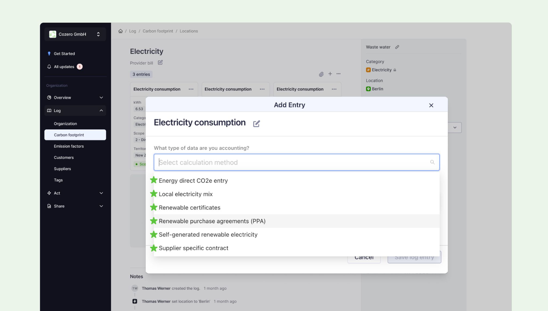 You can make data tracking, reporting, and any future GHG audit processes easier by adding the relevant documents as attachments to your log entries in Cozero. This allows you to easily view the types of documents used as the basis for calculations at a later time. You can also read more about the acceptance criteria of the market-based instruments here!